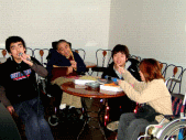 自立生活支援センターのみなさんへ 先日、お世話になった本保です。 この実習でたくさんいろいろなことを知 ることができました。 本当にありがとうございました。 その中で一番勉強になったのはバスの直 通、のりかえ各停の意味を知ったことで した。 今後の生活の中で、「少しずつのってみ る」という気持ちが出てきました。 ピアカウンセリングでも、貴重な話をた くさん聞かせていただき、ありがとうご ざいました。 バスに乗って出かけてみよう! 一日目は、コミニュティバスに乗って富山 駅前に出かけました。 行き先は、駅前のバス停とカラオケがメイ ン。カラオケでは熱唱!。 富山駅前バス停では、今まで疑問に感じ ていたことを質問したり、説明を受けたり、 いろいろと聞きました。 二日目は、お好み焼きを作りました。近 くのスーパーで材料を買って、自立生活 体験室で作りました。 午後からは、ピア・カウンセリングを行 い、いろいろなことについて話しました。 |